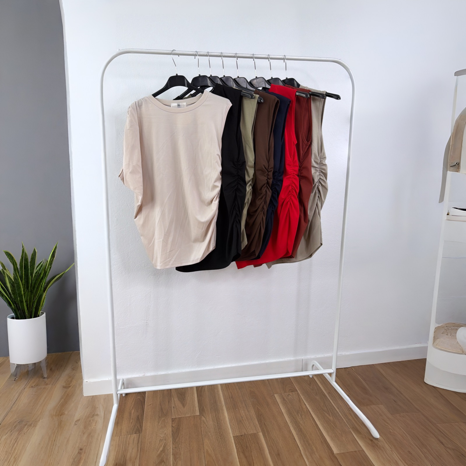 Camiseta asimétrica con manga si y manga no,con fruncen en la parte izquierda.