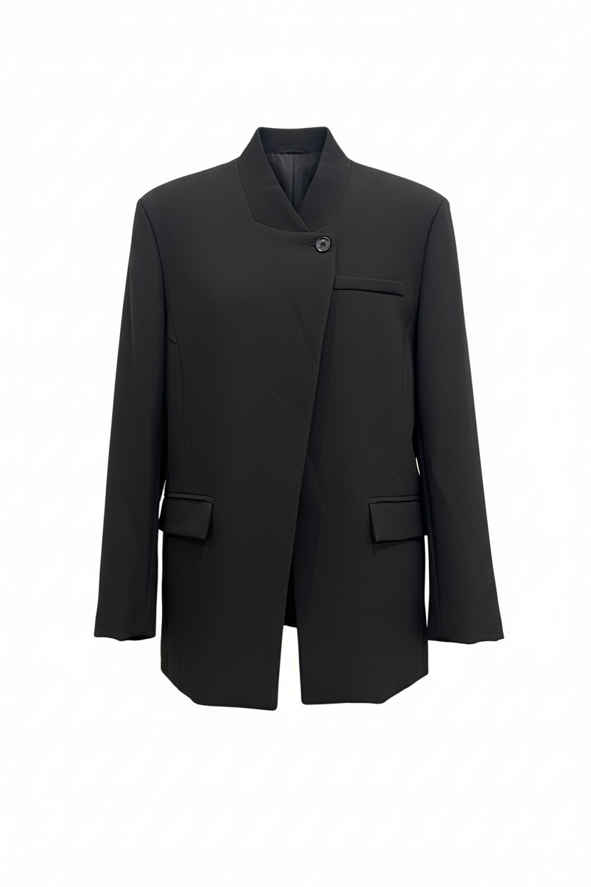 Abogado en la parte superior con un botón,con bolsillos.