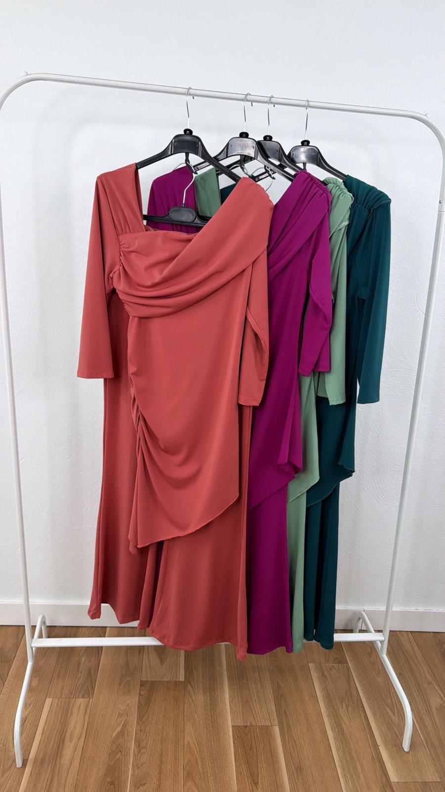 Disponible talla única Conjunto de top asimétrico y pantalón Parte de arriba -Largo:71 cm -Ancho:38 cm Cuello a la barca Pantalón -Largo:106 cm -Largo tiro:31 cm -Contorno cintura:73 cm Cintura elástica