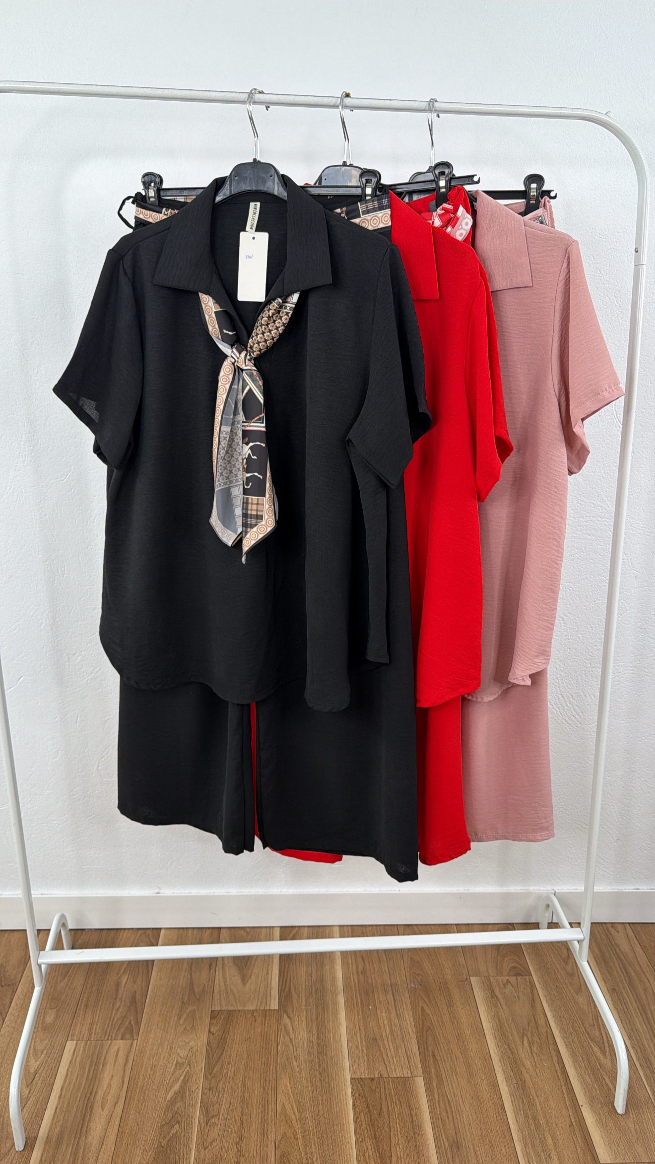 Conjunto de talla única,pantalón y blusa con complemento pañuelo.