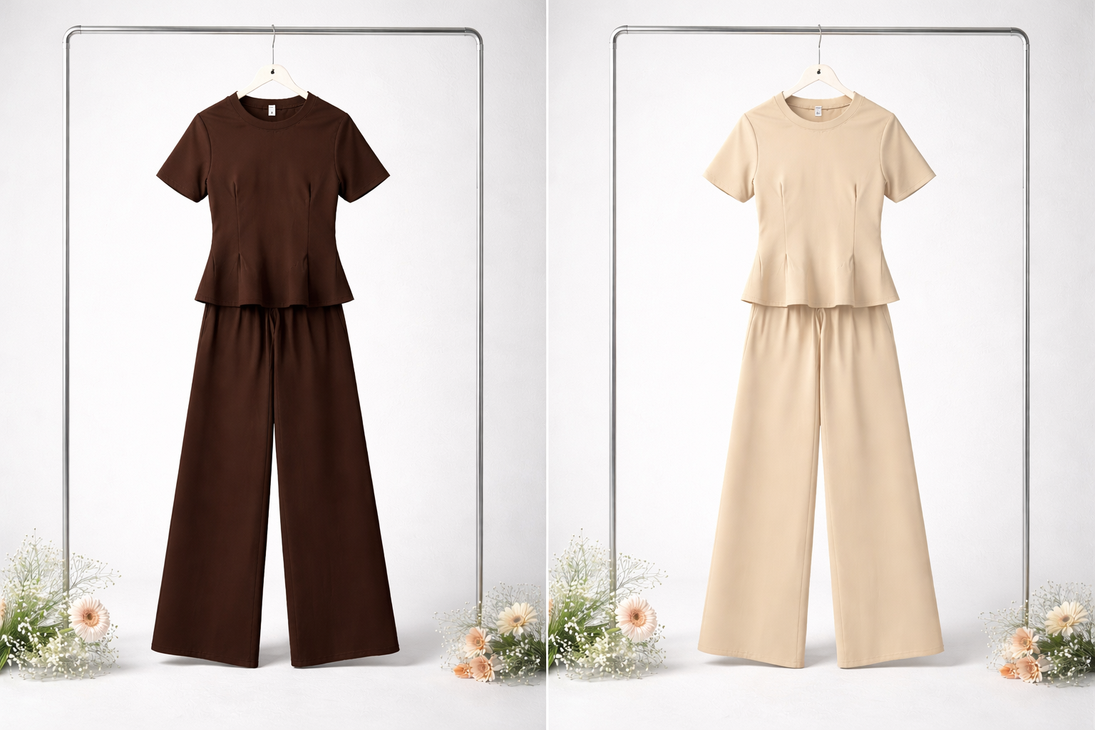 Conjunto talla única. Compuesto de pantalón y camiseta. Puede dar desde la 38 hasta la 42. disponible en 5 colores.