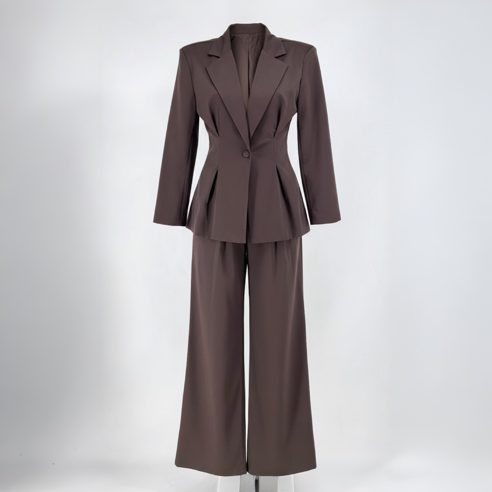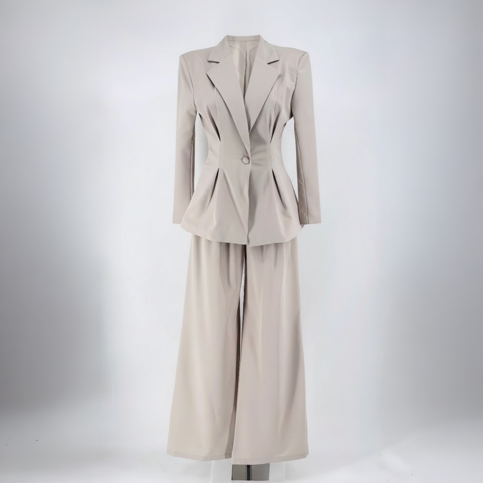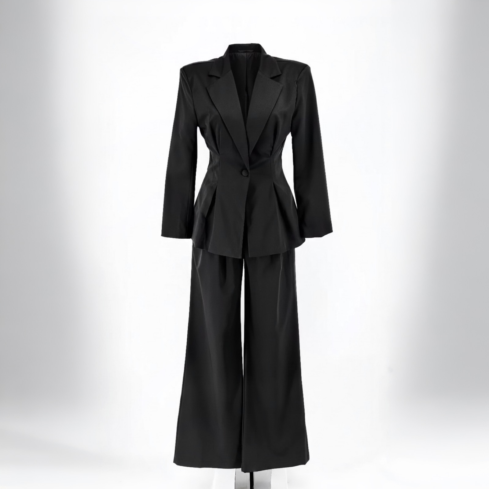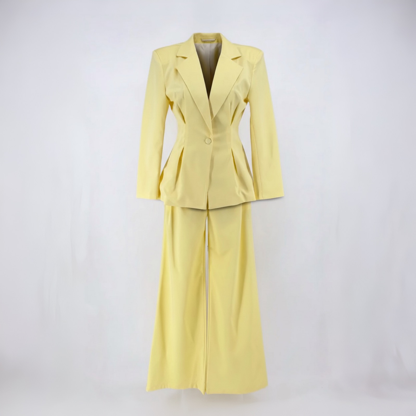 Disponible talla única Blazer y pantalón pata ancha -Blazer Largo:65 cm Largo manga:56 cm Ancho:41 cm Frunce en la cintura Con hombreras -Pantalón Largo:116 cm Contorno cintura:65 cm Cintura elástica
