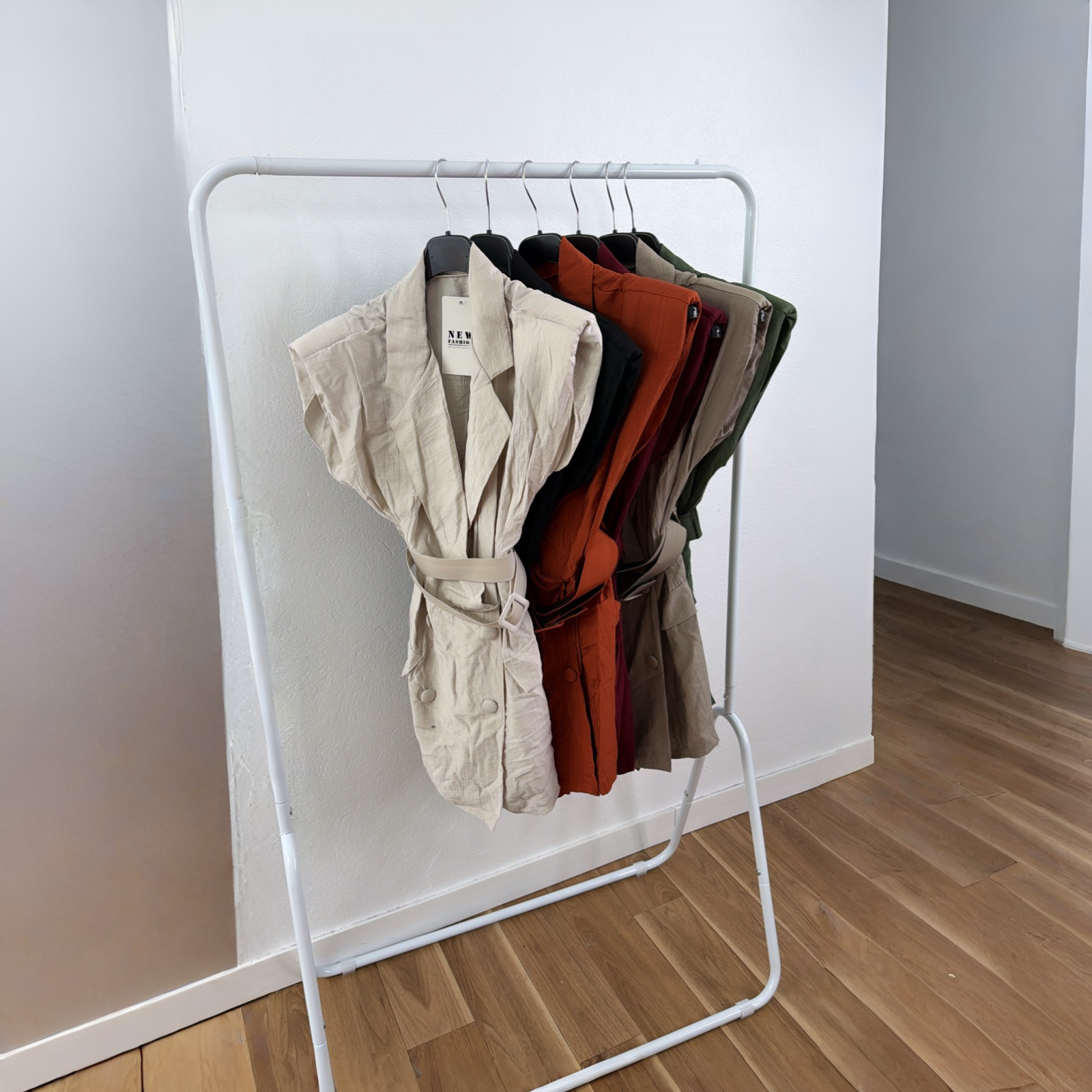 Mono de botones falsos y cinturón en la cintura,con hombreras.