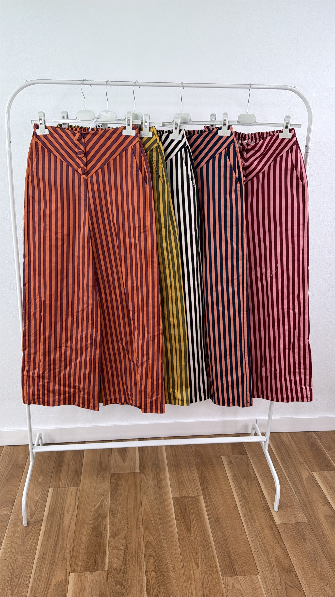 Pantalón de rayas,talla única ,cintura elástica,con adorno de botones en la parte delantera.