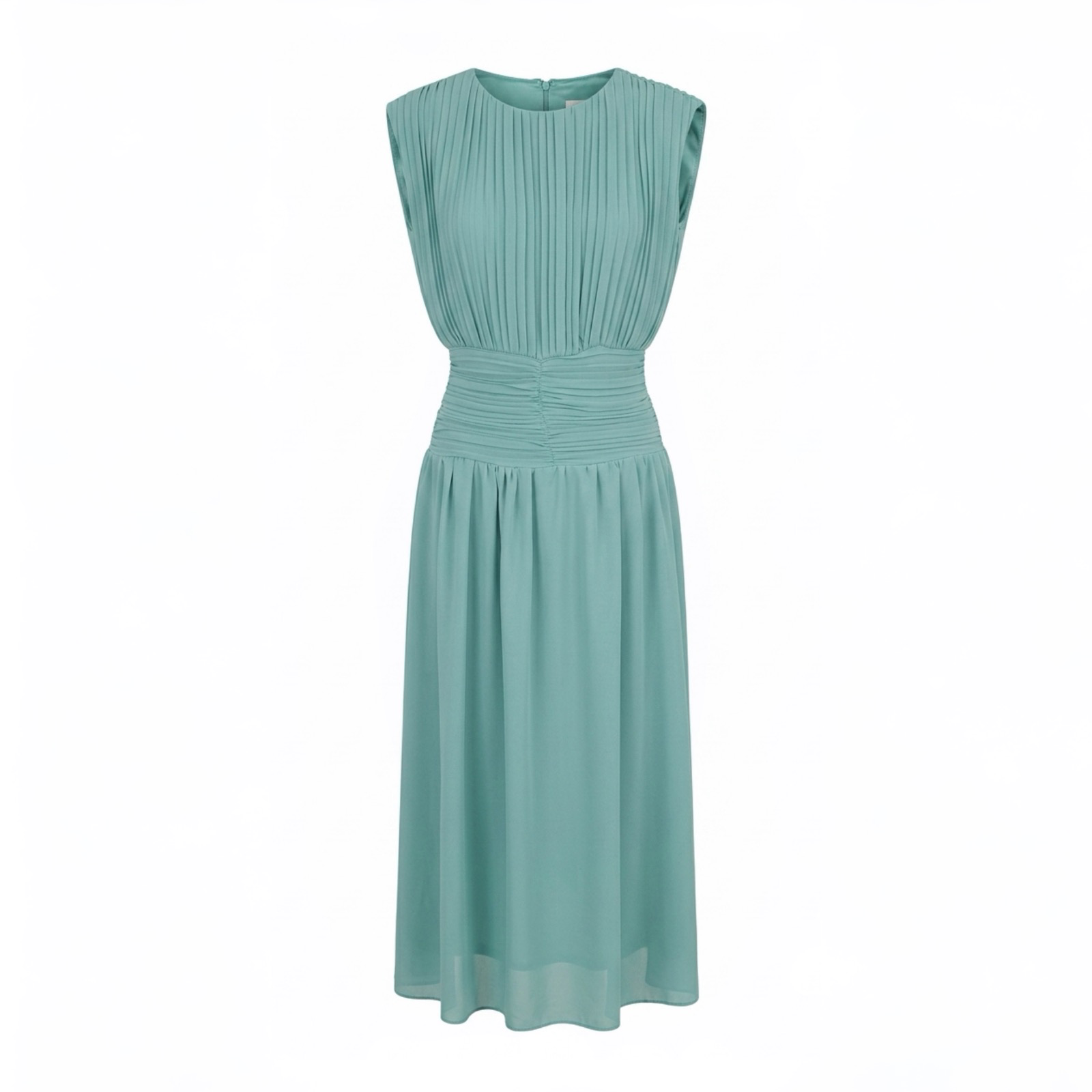 Vestido de gasa con forro y con fruncido en la parte de la cintura .