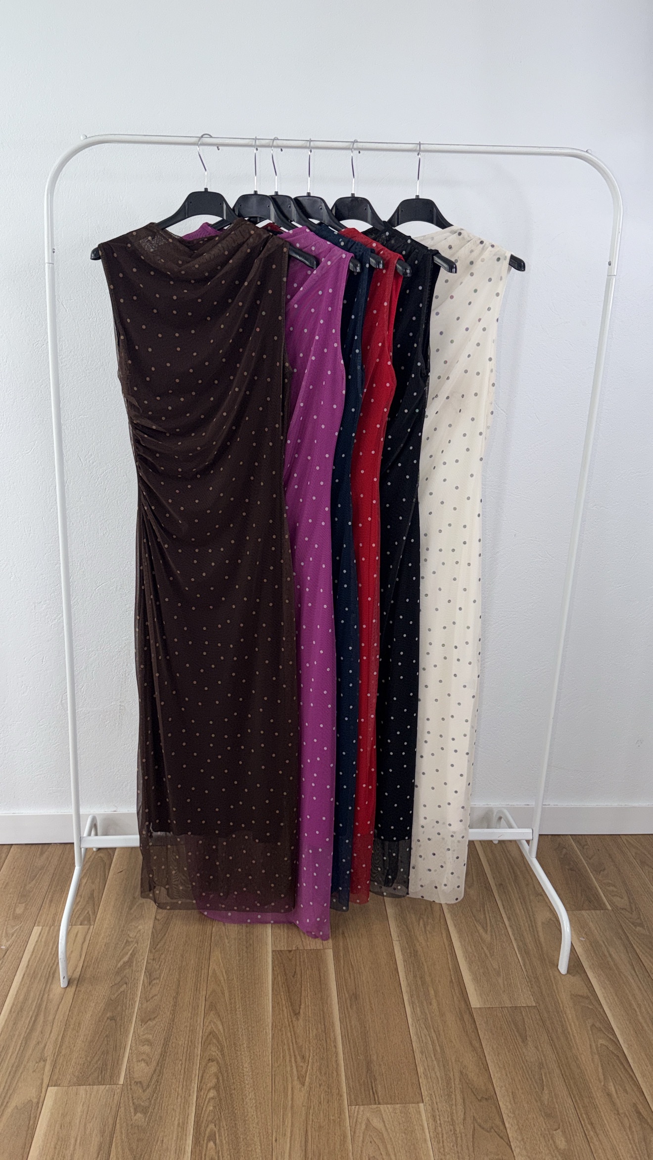 Vestido talla única. Vestido de gasa de lunares. Largo:138cm. Ancho:39cm.